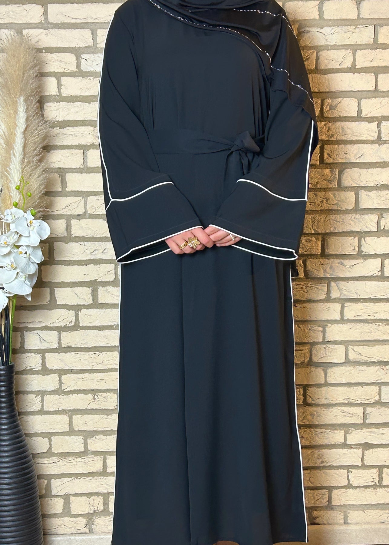 • Elegante Abaya mit feinen weißen Linien durchzogen.